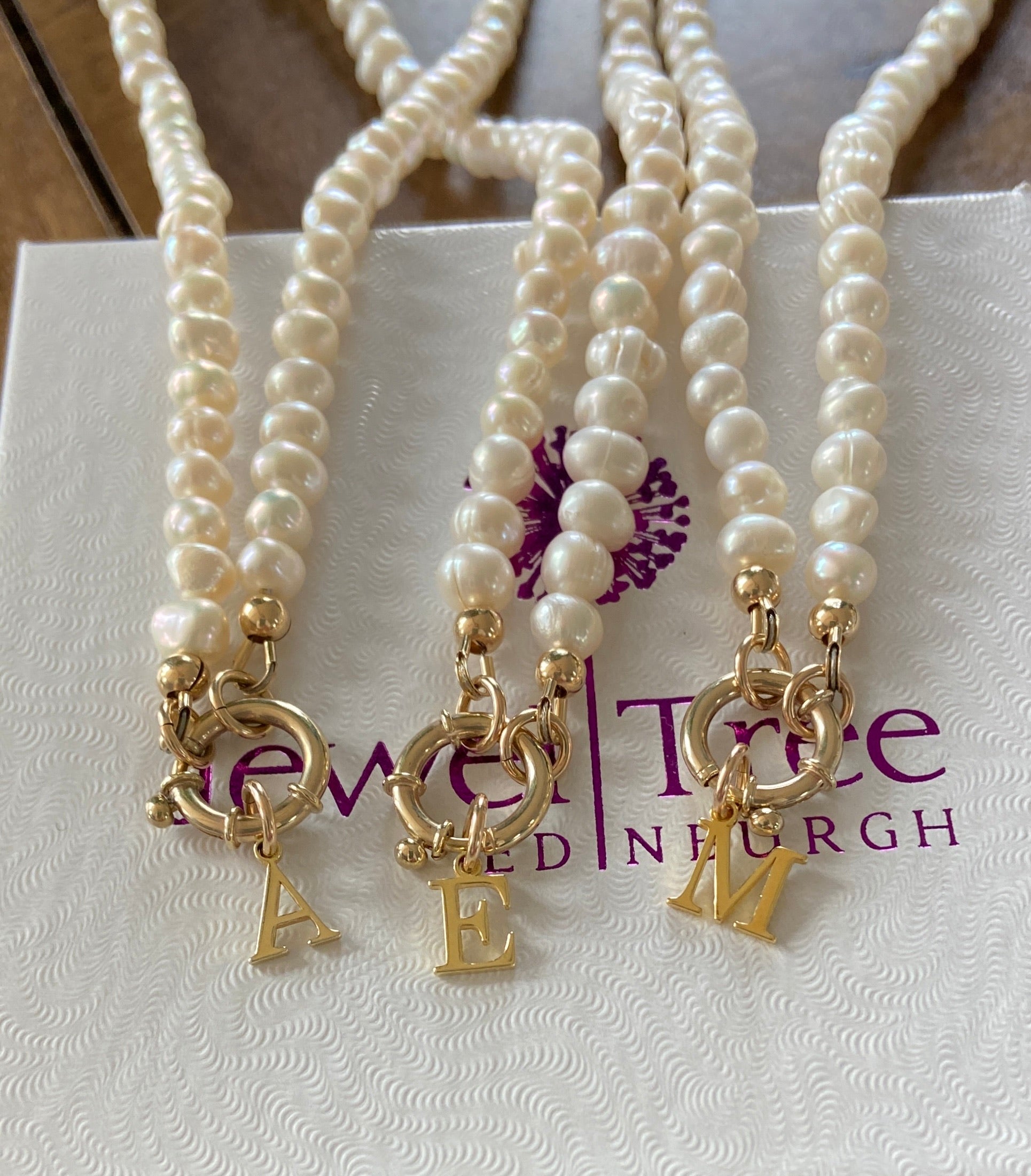 Pearl Necklace With 9 Carat Gold Designer Bolt Clasp And Initial Jewel Tree Edinburgh